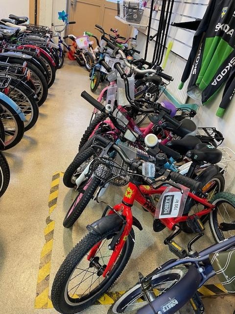 Vi har även ett helt gäng barncyklar i alla storlekar